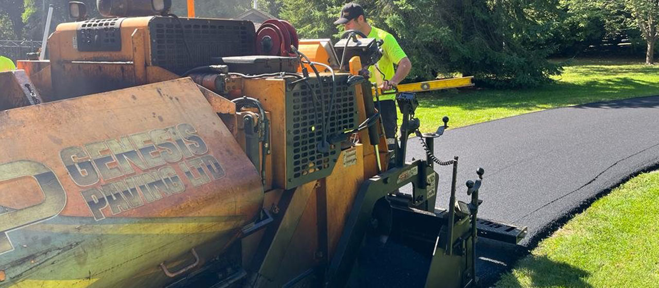 In order to lay asphalt driveways it is essential that all prep is completed carefully. We will analyze what is needed for your specific driveway, and customize our process accordingly. Base preparation is done through a mix of grading and excavation. If we are replacing an existing asphalt driveway, we first excavate to remove the old materials. If we are laying asphalt for the first time, we need to grade the driveway to remove holes and bumps. As part of preparing the base we add products like 3 inch minus rock and 5/8 crushed limestone to support and provide a hard foundation for your asphalt.